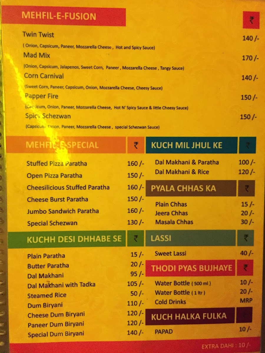 Welcome to Mehfil-E-Paratha, the latest gem in Vadodara's culinary scene, located at Uma Char Rasta, Taxashia Society. This inviting eatery is renowned for its delectable array of parathas, especially the standout Amritsari Paratha, which has won rave reviews from satisfied diners.